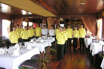 3/ Violet Cruise Enjoy local day-caught seafood well-cooked in Vietnamese marvelous cuisine in a spacious boutique dining room, inspire yourself with glass of wine admiring the brilliant sunset of the bay or simply relax with gentle pampering at Violet spa after taking exercises in the Violet gym. Those are just available at Halong Violet which is an ideal junk for family gatherings, honeymooners, or couples of friends who love to explore the exotic bay still enjoying, however, elegant comforts. To be launched on 1st November 2009, our newest five star junk -the Halong Violet -will be fitted out in the 1930’s Indochine style. It will feature a boutique dinning room, library & lounge, Spa & Gym and 6 individual theme cabins with marble bathroom, Jacuzzi & balcony.